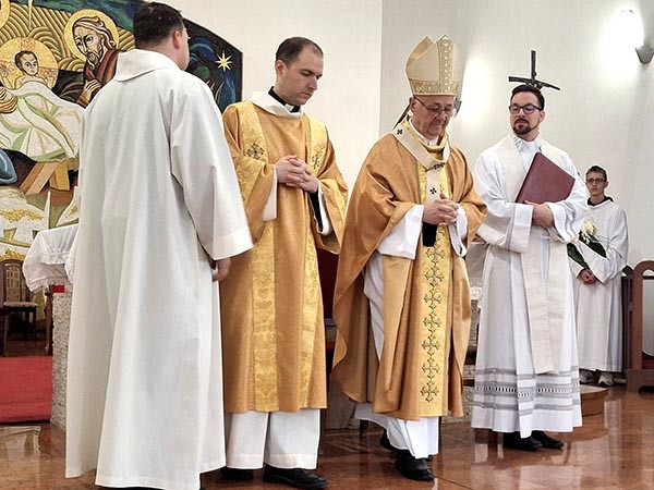 Kedves testvérem, ma itt van veled az egész Egyház. Itt vannak szüleid és testvéreid, a te elkötelezett katolikus családod, amely három szerzetesi hivatással örvendeztette meg és gazdagította az Egyházat. Itt van az egész ünneplő szalézi közösség, valamint ez a szép plébániai közösség is, amely szeretettel vesz körül téged és imádkozik érted. Mindannyian egybehangzóan arról tanúskodnak, hogy alkalmas vagy erre a szolgálatra, amelyre kiválasztást nyertél.