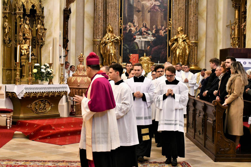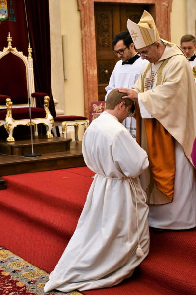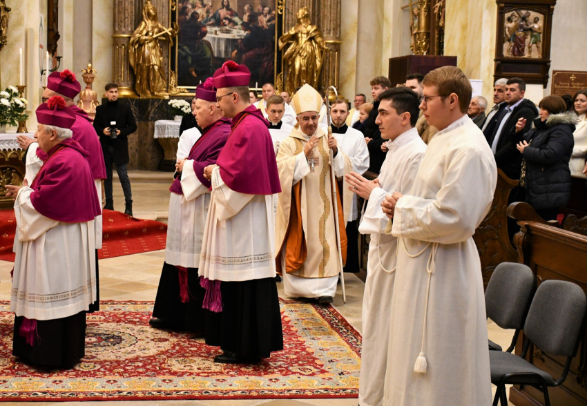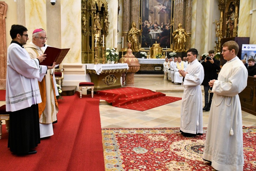 Bevezetőjében a főpásztor meleg hangon üdvözölte a jelöltek kollégáit, akik a fuldai és a müncheni papnevelő intézetből, illetve a budapesti szemináriumból érkeztek, ahol a két fiatalember jelenleg folytatja tanulmányait.