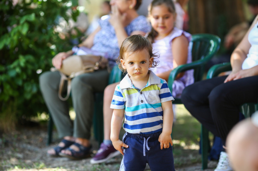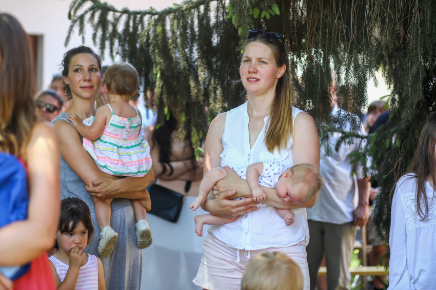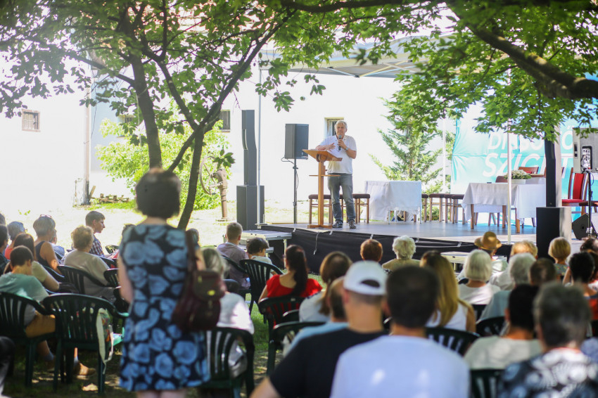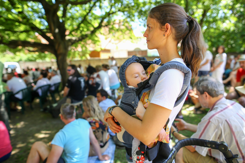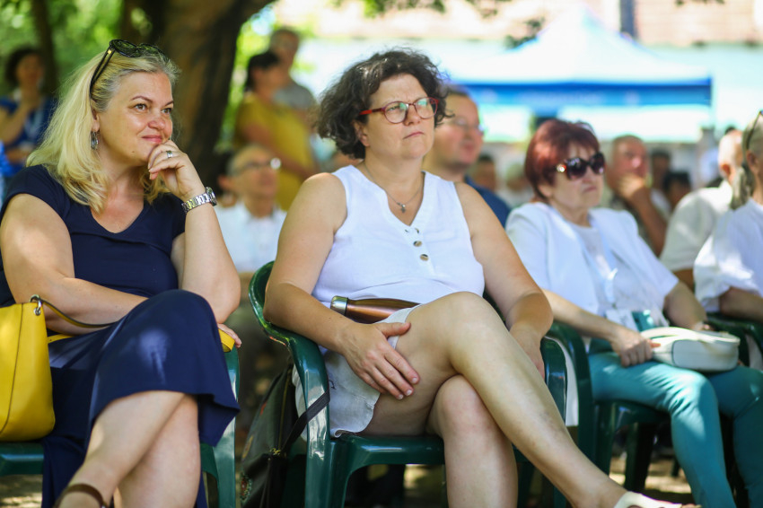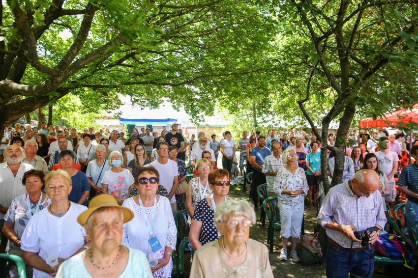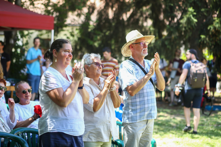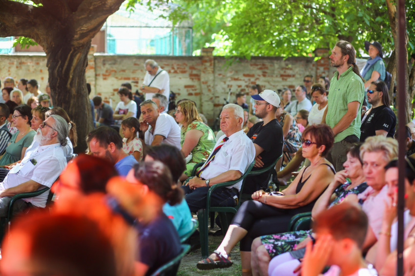 Csókay András tanúságtételét követően Marton Zoltán László szigetmonostori plébános mutatott be koncelebrált szentmisét a kerti színpadon felállított oltár előtt.