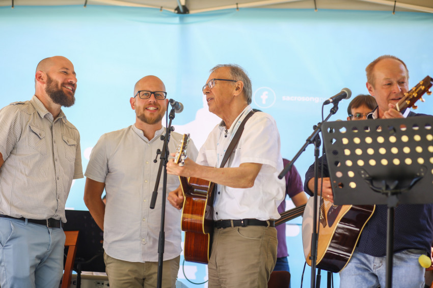 Közbevetésünkre, hogy a délelőtti úrnapi katolikus szentmisén Sillye Jenő és barátai zenéltek, az esti zárókoncertet pedig az Euchariszt együttes adja, egyértelmű a folytonosság a hazai evangéliumi zene megteremtője és egykori tanítványai, utódai között, Gável András azt felelte: mindig van okunk hálaadásra, így Jenőért is hálát adtak a szentmisén. Az apostol itt járt című, Sillye Jenőhöz írt versére utalva kifejtette: Jenő hangja sokak életében, így az ő és Gellért öccse kamasz életében is Jézus hangja volt. Amikor a Kristályóriást hallgatták, Jézusban növekedtek belülről. Az apostolok Jézusról beszélnek. Számukra Jenő zenei apostol volt, de az evangélium örömhírét is közvetítette, így bennük is nyomot hagyott és hagy mindmáig az ő élete. „Az apostol itt járt, és kézen fogott…” Ebben a szellemben szeretnék ők is folytatni a zenei evangelizációt.