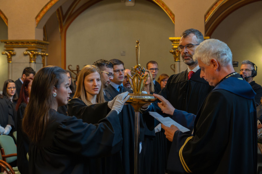 Komáromi László, a Jog- és Államtudományi Kar (JÁK) dékánja Szent II. János Pál pápa vélekedésére emlékeztetett, aki szerint az egyetemek feladata az, hogy feltétel nélkül az igazság keresésének szentelje magát. Hozzátette: az is járulékos feladat, hogy az igazság továbbadása állandó törekvésünk legyen.