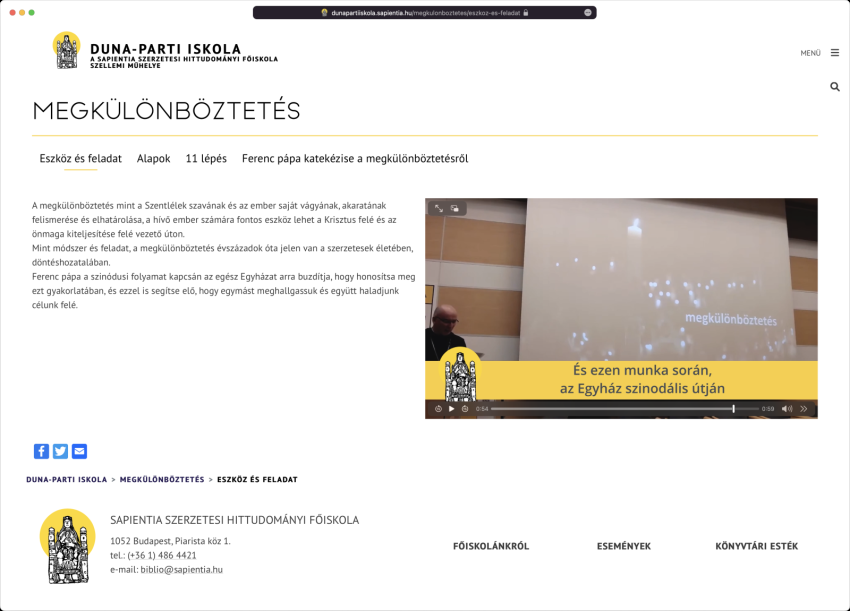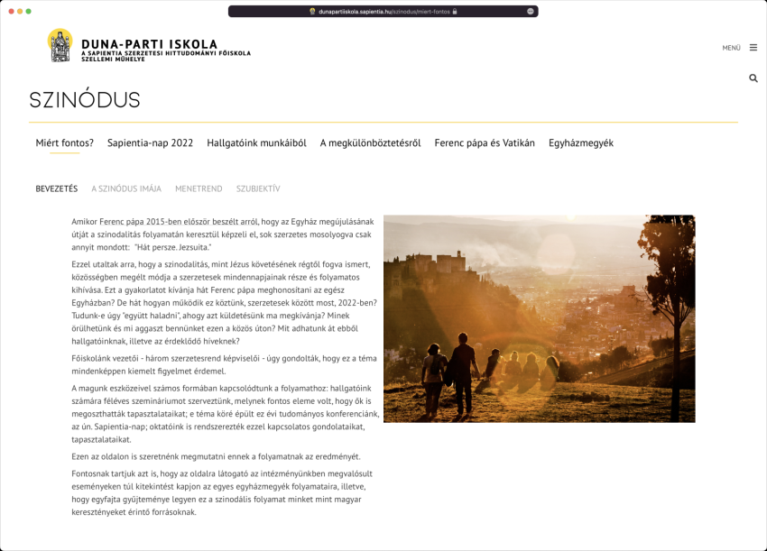 – A Duna-parti Iskola honlapján vannak témák, amelyek a Világegyház aktuális történéseihez kapcsolódnak: gazdag anyagot állítottunk össze például azok számára, akik még csak most ismerkednek a szinódus fogalmával, folyamatával, illetve szeretnék megtudni, hogy a megkülönböztetés mint a szerzetesi hagyományban gyökerező módszer és feladat, miként járulhat hozzá ahhoz, hogy az életünket meghatározó fontos kérdésekben jó döntéseket hozzunk.