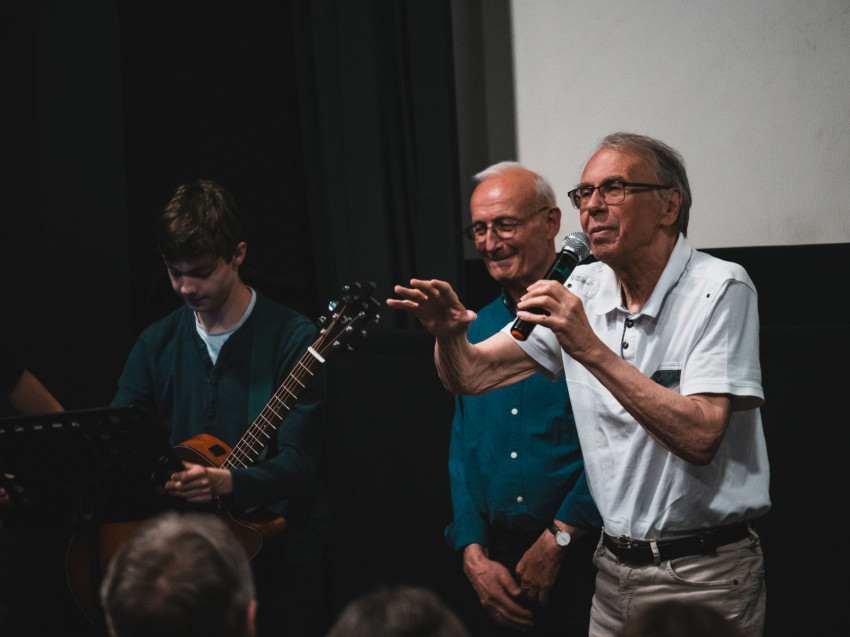 A megjelenteket Tariné Murányi Erika, az Apostol Televízió munkatársa köszöntötte. Kiemelte: a Sillye Jenőről szóló dokumentumfilm egyúttal az Apostol TV premierje is, ugyanis ez az első mozifilm, amit készítettek. Tariné Murányi Erikának a 150. zsoltár jutott eszébe: „Dicsérjétek az Urat…, dicsérjétek lanttal és hárfán! (...) Dicsérjétek kürtzengéssel…, dobbal és tánccal…” Hozzátette: ugyanezt teszi Jenő is, zenéjével és szövegével immár több mint ötven éve folyamatosan dicséri az Urat.