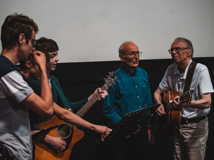 Jenő felidézte, hogyan született meg a legelső dala: templomi kórusban énekelt, és néhány barátjával szabadidejükben is összejártak, „együtt pengettük a lantot”. A kórusvezető fölvetette: mi lenne, ha mindenki a hitéről írna vagy festene, rajzolna valamit. Jenő megírta a Hol van a szeretet? című dalát: