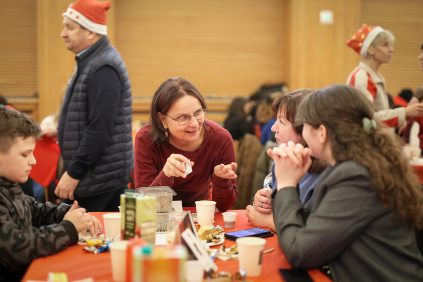 Pécsett kétszázan voltunk a ciszterciek Nagy Lajos Gimnáziuma dísztermében. Ez a karácsonyi ebéd is szép prófétai látomás arról, hogy egymástól nagyon különböző élettörténetű, társadalmi helyzetű emberek hogyan ünnepelhetik együtt a Megváltó, a Béke és a Barátság Fejedelmének születésnapját, nagy mélységben és meleg hangulatban. A köszöntőben a pécsi közösség vezetője, Nagy János felidézte Ferenc pápa 2022-es karácsonyi szentbeszédének egy gondolatát: