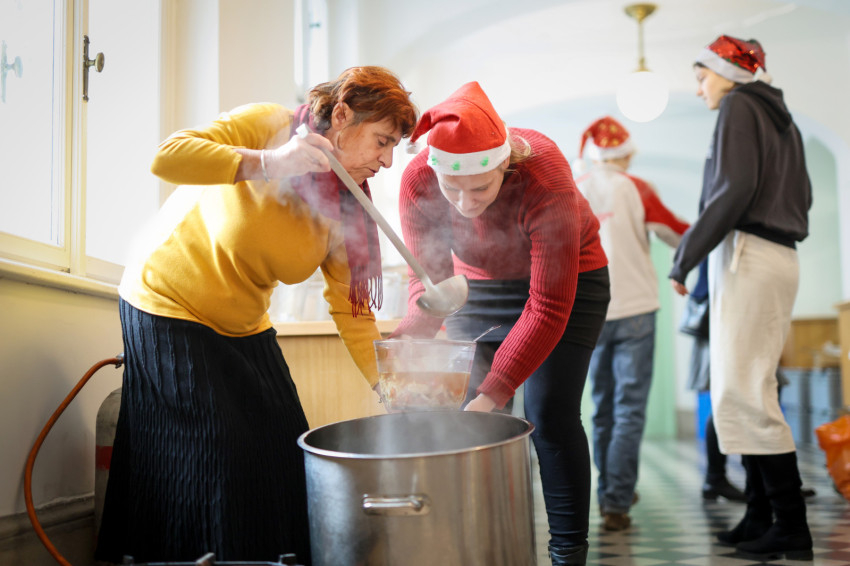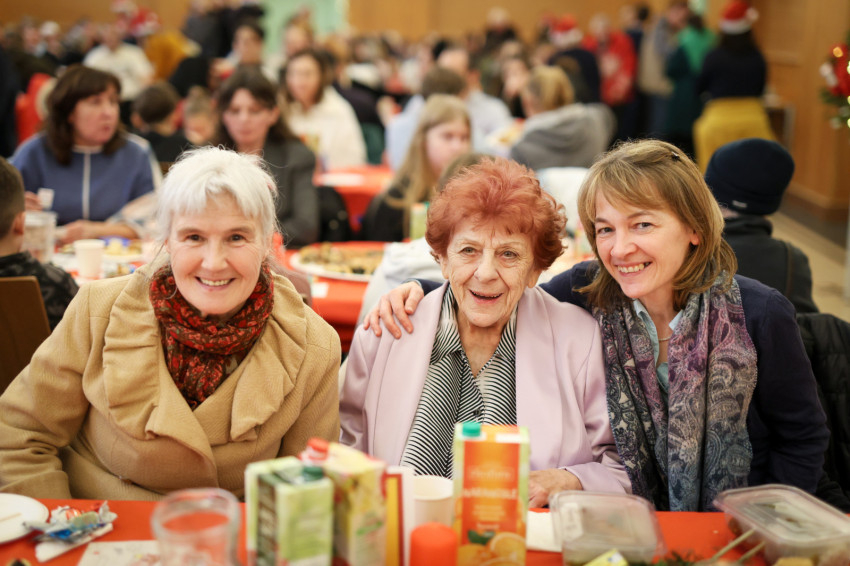 Ezek a gondolatok jutottak eszembe a Sant’Egidio budapesti ebédjén karácsony napján, a Budai Ciszterci Szent Imre Gimnázium gyönyörűen felújított ebédlőjében, amely megtelt fedél nélküliekkel, lakhatási szegénységből, fűtetlen bérlakásokból érkező vagy szociális otthonokban, család nélkül vagy abból kiszakítva élő idősekkel. Fiatal ukrán édesanyákkal, akiknek férjei vagy a fronton, vagy a hátországban védik hazájukat. Az egyik ilyen asztalnál ülő fiatal ukrán anyukák fogadtak barátságukba egy hazánkban menedékre és ösztöndíjra lelő gázai palesztin egyetemista lányt: új barátságok, új ölelések születtek.
