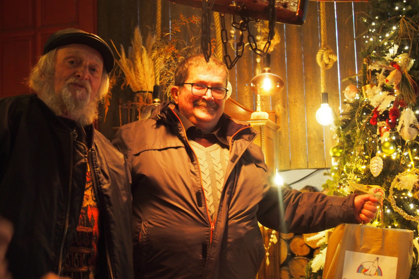Monoron idén is a csodaszép Fürge Páva bisztró adott helyet a Sant’Egidio karácsonyi ebédjének, a tulajdonos, Kruchió László, „pápai és elnöki virágkötő művész” segített az előkészületekben és a felszolgálásban is, beszélgetett a vendégekkel.