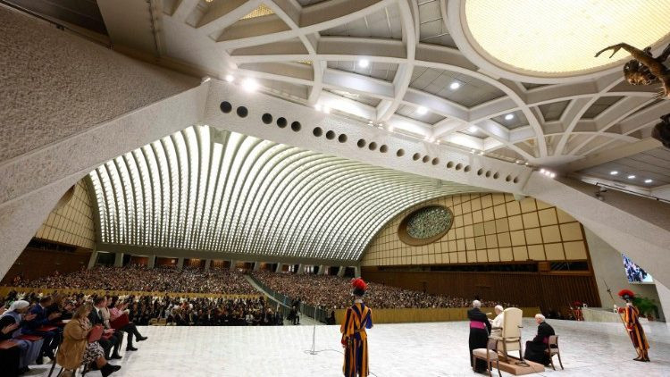 A Szentatya az audiencia előtt a kisteremben találkozott velük: üdvözölte, megölelte őket, megajándékozták egymást. A pápa még a gyűrűcsók előtt, a türelemről szóló katekézise végén a világ figyelmét is felhívta tanúságtételükre.