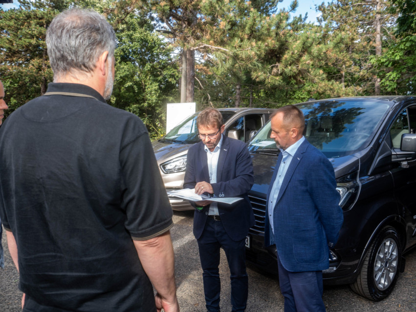 Az érsek beszéde után megáldotta a kisbuszok használóit, majd pedig a járműveket is.