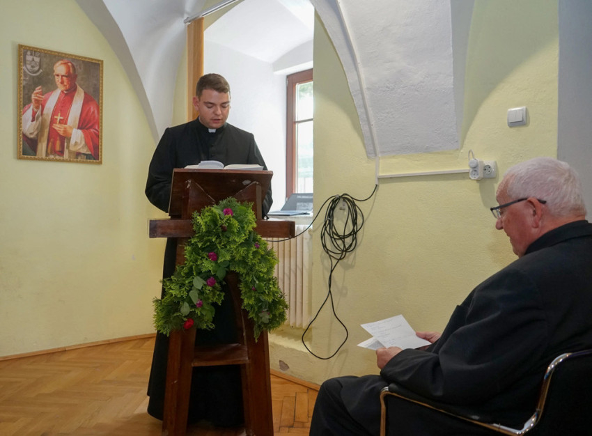 A közös ünneplés kezdetén András István szemináriumi rektor üdvözölte az egybegyűlt tanárokat és kispapokat. Beszédében örömének adott hangot, hogy közösségük tagja, Marton József pápai prelátus, nagyprépost, nyugalmazott egyetemi dékán, tanár idén átvehette a Szent István Társulat és a Stephanus Alapítvány közös díját.