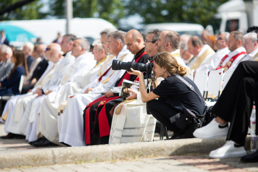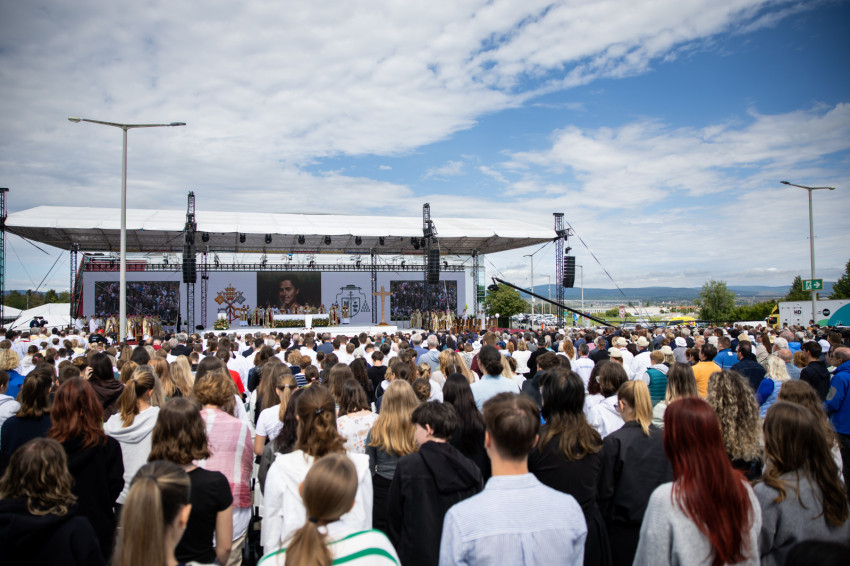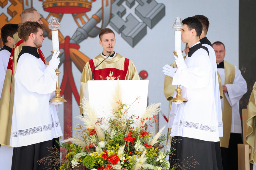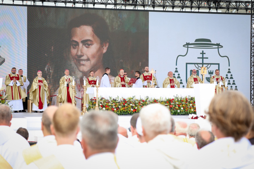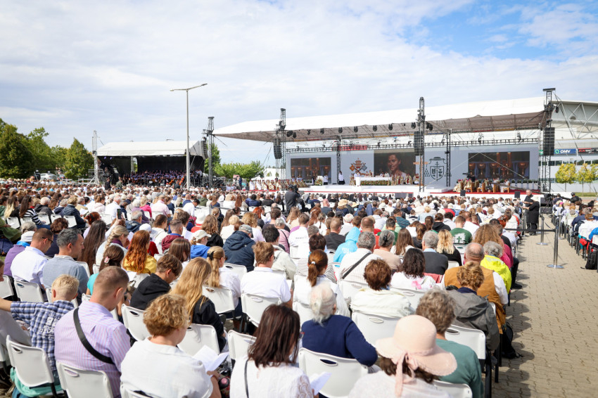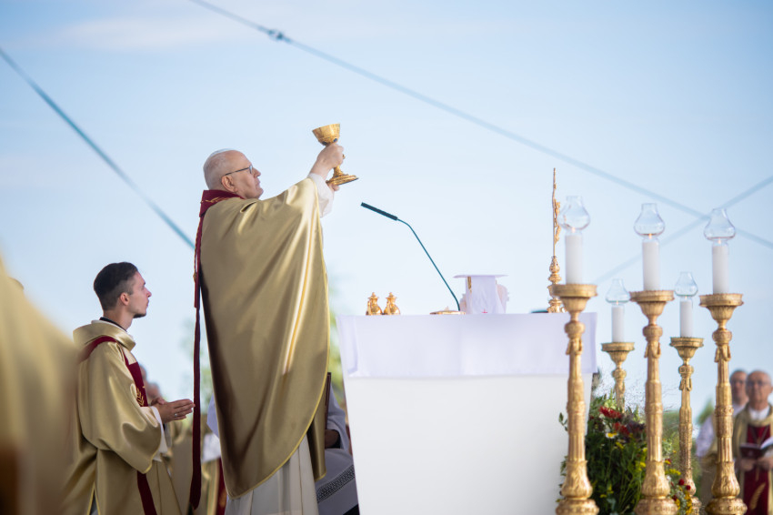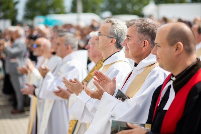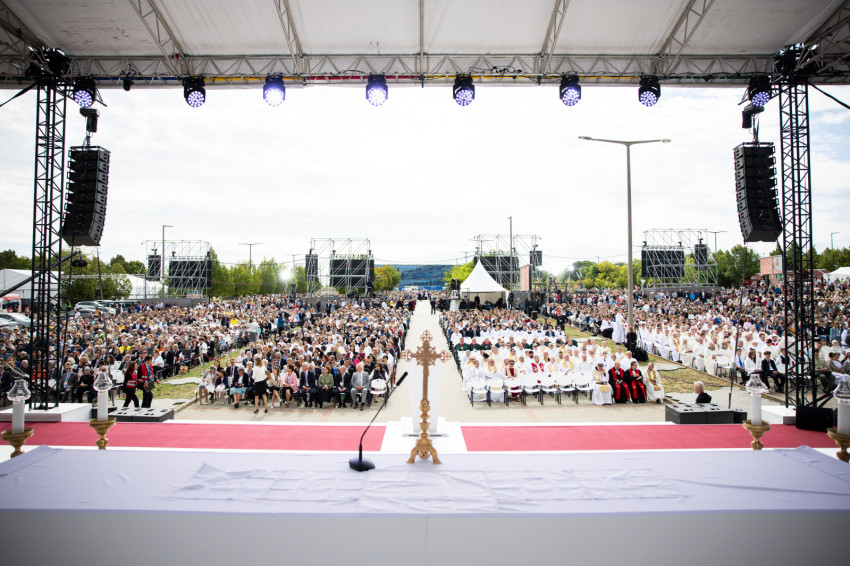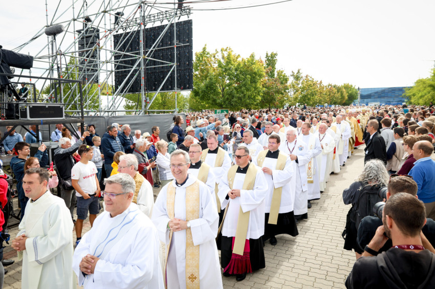 Az áldozás alatt az eucharisztikus himnuszt is együtt énekelték a hívek, majd a Te Deum hálaadása következett.