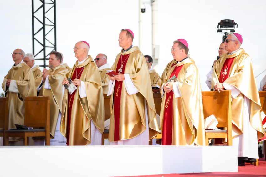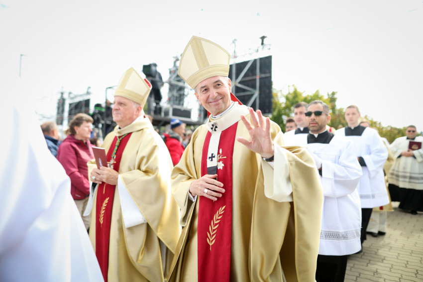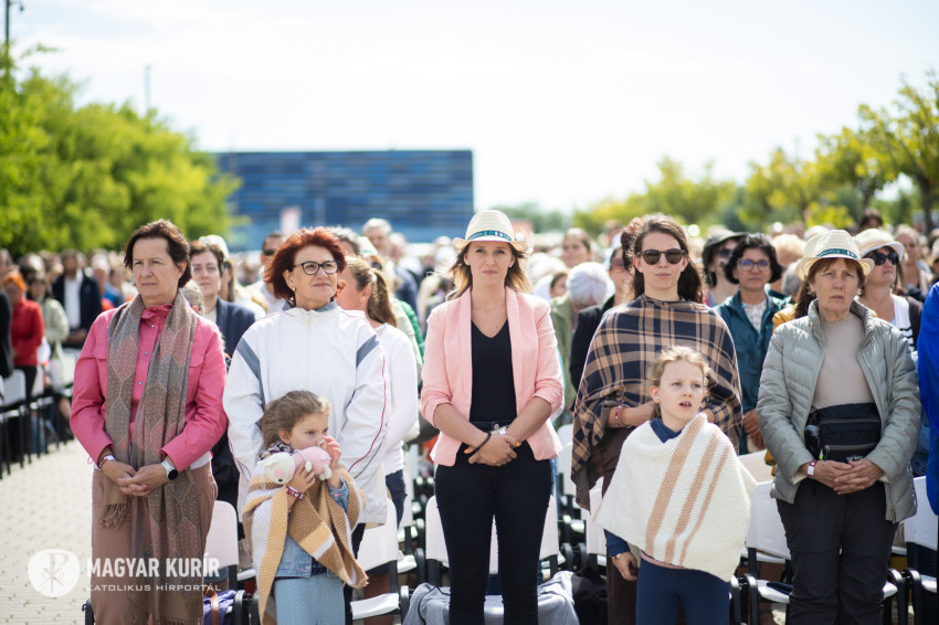 A szentmise a pápai és a nemzeti himnusszal, a Boldogasszony anyánk ősi himnuszával és az Isten, hazánkért térdelünk elődbe énekünkkel fejeződött be.