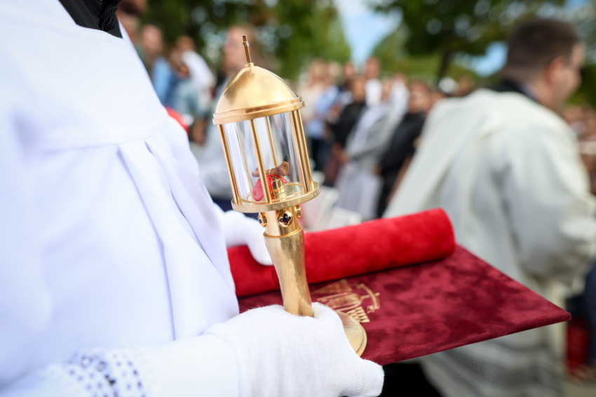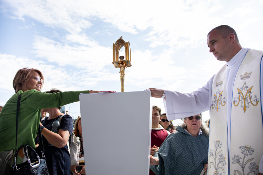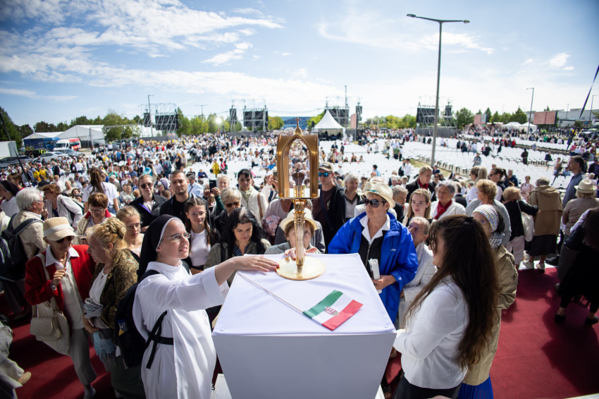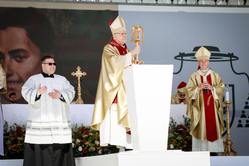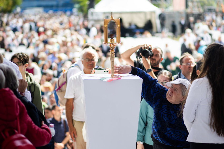Márfi Gyula nyugalmazott veszprémi érsek az oltárnál átadta Bódi Mária Magdolna ereklyéit, melyeket Laposa Norbert balatonfűzfői plébános hozott ünnepélyesen Cristiana Marinellivel és fiatalokkal együtt. Ezekből egyet Erdő Péter bíboros elhelyezett a missziós keresztben.