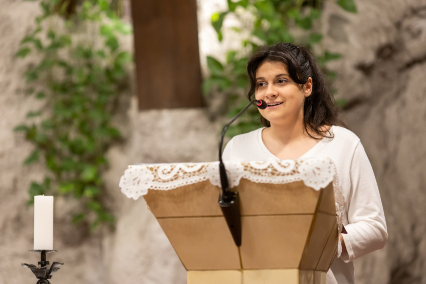 Az imaesten tanúságot tett hitéről a huszonegy éves Magyarics Zsuzsa, aki útkeresőnek nevezte magát. Már gimnazistaként csatlakozott a Fiatalok az Élet Szolgálatában (FÉSZ) közösséghez. Itt találkozott először igazán az életvédelem fogalmával. Mivel foglalkozott már gyerekekkel és idősekkel is, többféle életállapotot megismert, kísért. Az élet nehézségekkel, küzdelmekkel teli, ez vitathatatlan. Az ember folyamatosan küzd és elbukik. Magyarics Zsuzsa azonban hisz abban: minden fájdalom, szenvedés ellenére megéri örülni, és meg lehet találni az öröm forrását. „Hívőként a teremtettségemben, Isten szeretetében tudok nap mint nap örülni és hálát adni az életért, amit kaptam” – fogalmazott a tanúságtevő.