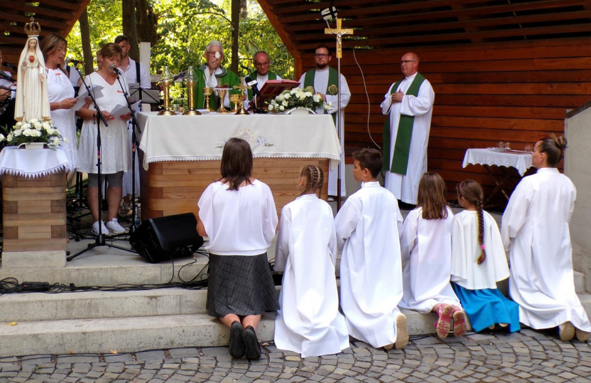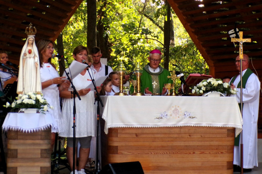 Szentbeszédében a főpásztor felidézte a kegyhely történetét és Shvoy Lajos püspök érdemeit abban, hogy a legsötétebb kommunista rémuralom idején a Fatimai Szűzanya szobrának másolata Portugáliából végül eljutott hazánkba, és itt helyezték el, ezen a kicsi településen, ahol még igazi templom sem volt akkoriban. Az egykori kastély területén alakítottak ki neki helyet.