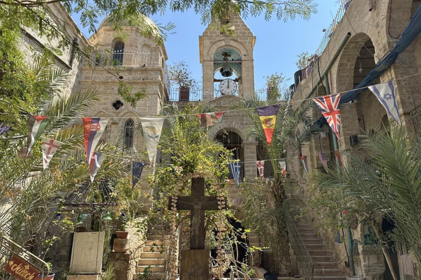 Buja fák és virágos növények borítják a csendes ösvényeket, amelyek az ősi komplexum különböző épületeihez vezetnek: a templomhoz, a kápolnákhoz, a mozaikműhelyhez, a vendégházhoz és az étkezőhöz. A kolostor falán a palesztin történelem fotói láthatók, Arafat Clintonnal és Rabinnal. De az izraeli zászló is ott van a háromszög alakú zászlók között, amelyek egy dróton lógnak a lépcsősor felett.