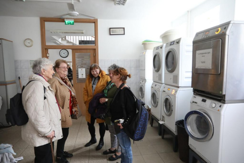 Végül Tamás József esetfelelős szociális munkás vezette körbe az intézményben a vendégeket, akik a lakószobákat, a közösségi tereket, a tüdőszűrő állomást és a mosodát is megtekintették.