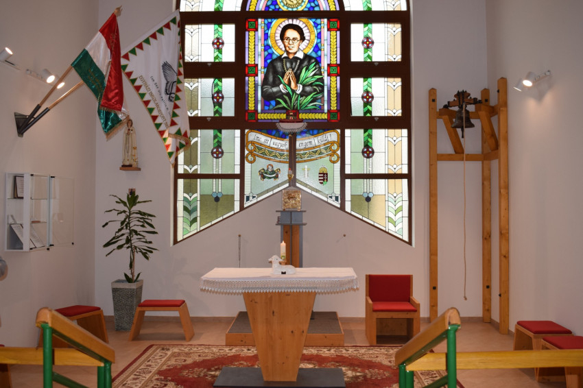 Az intézmény kápolnáját két éve szentelte fel Erdő Péter bíboros, prímás, hogy „az evangelizálás által neveljünk és a nevelés által evangelizáljunk”. Most néhány percre ismét egy lett az oltár és a katedra.