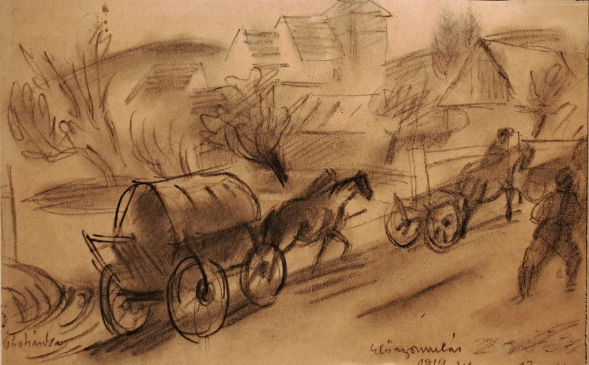 A második terem egy sokkal kényesebb témával foglalkozik: a műalkotó és az I. világháború frontvonalain uralkodó légkör viszonyrendszerével. Nem tudhatjuk, hogy Prohászka mekkora szerepet vállalt a Monarchia hadseregén belül működő sajtófőhadiszálláson, de képein igyekezett megörökíteni a front békés pillanatait is. Grafit- vagy széntechnikával készült rajzain olyan témák jelennek meg, melyek a magánélet intimitását érintik (családi látogatás, levelet olvasó honvédkatonák, vasárnap délutáni pihenés), és igyekeznek emberközeliek maradni (mandolinon játszó honvédtiszt, Prohászka Nándor).