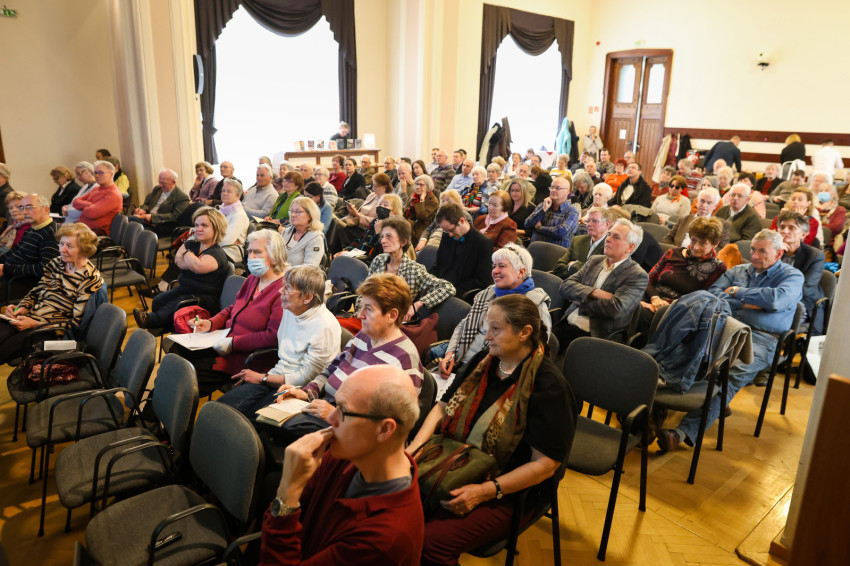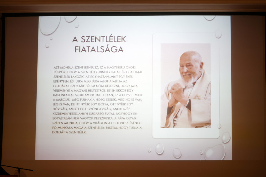 Koronkai Zoltán ezután előadást tartott, amelyben először Nemeshegyi Péter életéről beszélt. Elmondta, édesanyja súlyos beteg volt, amikor Péter fiát várta, ám hiába javasolták az orvosok, hogy vetesse el a magzatot, nem hallgatott rájuk. Nemeshegyi Péter értelmiségi létbe nőtt bele, a család életében nagy szerepet töltött be a kultúra. Szülei vallásosak voltak, de nem gyakorolták a hitüket. Talán ezért is alakult ki benne egy jó értelemben vett vallási tolerancia. A Budapest-Fasori Evangélikus Gimnáziumba járt, már fiatalon több nyelvet elsajátított. Egyszer a meleg elől bement egy templomba; az ott látott szentmise döntő jelentőségű volt az életében. Később sokat írt a szentmiséről, az Eucharisztiáról.