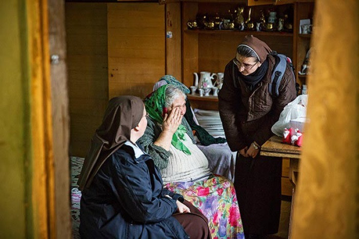 Dermedt kézzel nyújtja felém a féltve őrzött keresztet Bernáth Klára. Az idős asszony sok évvel ezelőtt Lukrécia nővértől kapta ajándékba, ő pedig – a ferences szerzetes – Paskai László bíborostól, aki egy pápai audiencia alkalmával Rómából hozta. Szívmelengető történeteket mesél a 102 éves korában elhunyt legendás apácáról a hideg szobában. A lerobbant épület lakói hosszú hetek óta háborúznak az önkormányzattal, merthogy az életveszélyessé nyilvánított kémény miatt tilos fűteni. Mondhatni, utolsó csepp ez télvíz idején a nélkülözés határán lavírozó Klári néninek és lakótársának, Máriának. Láthatóan a két kisnyugdíjas nem csak a mai ajándék tejért hálás a nővéreknek, sokkal inkább a rendszeres törődésért, a beszélgetésekért, a simogatásért.