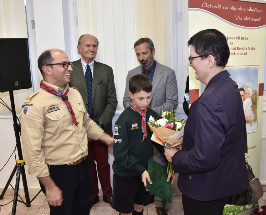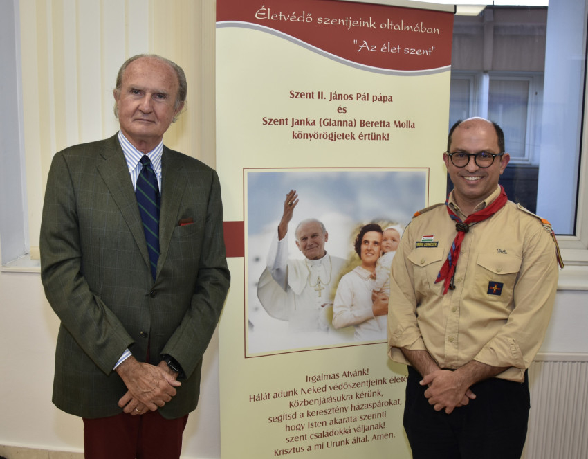 – Idén van születésének 100. évfordulója, ennek kapcsán gondoltuk, hogy népszerűsíteni lehetne az alakját, életpéldáját, és a cserkészcsapatunkat is jobban megismerhetik az érdeklődők. Olvastam a Magyar Kuríron, hogy Nyíregyházán létrehoztak egy vándorkiállítást Gianna Beretta Molláról. Ha vándorkiállítás, Mosonmagyaróvárra is elvándorolhat – gondoltam. Lefordították magyarra a Szerelmes levelek című könyvet, amelyet Budapesten be is mutattak, miért ne mutathatnák be Mosonmagyaróváron is? Kérdeztem Szent Johanna fiától, tanúságot tenne-e édesanyjáról, és igent mondott, a kiállítás megnyitójára sikerült meghívnunk őt is. Nyáron egyszer meghallgattam Csókay András előadását: ő is orvos, tanúságot tesz Krisztusról a mindennapi életünkben, életvédelemről… Az előadás végén meghívtam Mosonmagyaróvárra, és igent mondott, szívesen jött, ráadásul a családja révén mosoni származású. Megszerveztük az egész heti programot, és megkértük Veres András püspököt, mondjon egy misét. Nagyon tetszett neki az ötlet, a programsorozat, és azt szerette volna, hogy az egész egyházmegye ünnepe legyen, ezért a győri székesegyházban mutatta be a misét. Szép homíliát mondott, és utána kinyitotta számunkra a kertjét, ott ettünk, játszottunk, megáldotta a gyerekeket, fiatalokat.