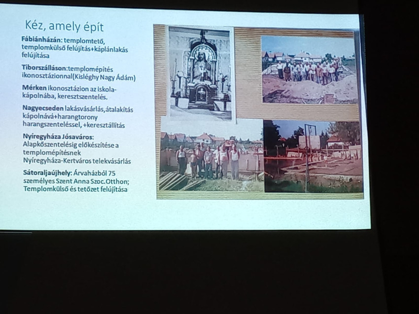 8. Kéz, amely épít. Nehéz lenne ebben a beszámolóban felsorolni azokat a templomokat, közösségi házakat, szociális otthonokat, amelyeket az atya közreműködésével építettek, felújítottak, rendbe tettek. Mindenhol megtalálta nemcsak a lelki, hanem a fizikai építés feladatait is.