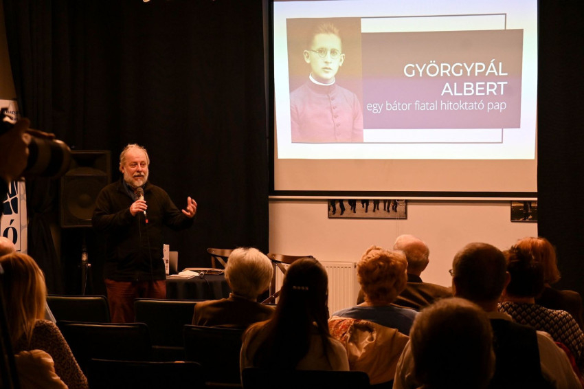 Serfőző Levente oktatási püspöki helynök, aki jelenleg a szeged-felsővárosi Szent Miklós-templom plébánosaként szolgál, felidézte, hogy a székely származású Györgypál Albert 1914. június 28-án született a mai Szerbia területén található, akkor a Magyar Királyság Torontál vármegyéjében fekvő Melencén. A családnak a trianoni döntés után menekülnie kellett, így Békéscsabán telepedtek le. Györgypál Albert itt nagyon egységes, ökumenikus világban nőtt fel, 1932-től pedig már papnövendékként tanult a szegedi nagyszemináriumban. „A közösség alkotó egyénisége volt. A Cor Unum papi kör tagja volt, odaadó, szolgálatkész, német nyelvtudással rendelkező teológusként a kor legjelentősebb jezsuita szakirodalmát olvasta németül” – mondta el a szerző.