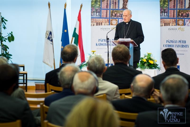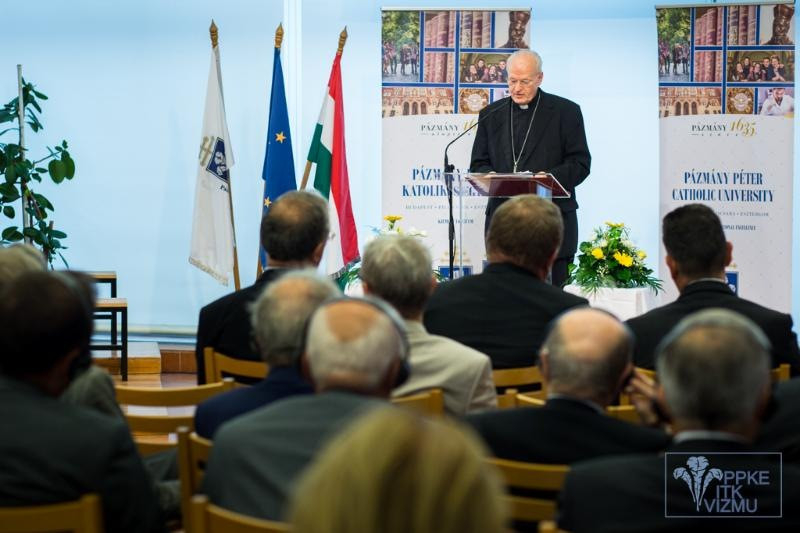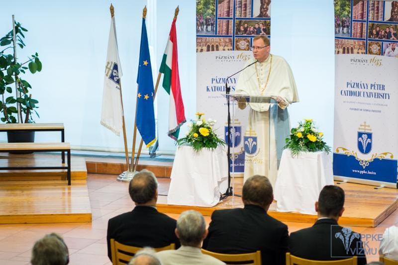 Az MKPK elnöke emlékeztetett az egyetem általános értelemben vett küldetése: „a kor tudományát a legmagasabb szinten oktassa, tanítsa, és fogja egységbe azokat, akik az adott tudományban szeretnének elmélyülni, tudásban növekedni”. Felidézte a kar kezdeti időszakát: „Korábban, az MKPK titkáraként is láttam, hogy nagyon szépen megvalósult a professzorok és a diákok közössége, s szeretném hinni, hogy húsz év elteltével ez ugyanígy folytatódik, hiszen ez fogja még nevezetesebbé, híresebbé tenni a kart.” A püspök örömét fejezte ki, hogy a magyar diákok mellett a külföldi fiatalok érdeklődése is egyre jelentősebb a fakultáson folyó oktató-kutató munka iránt.