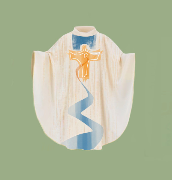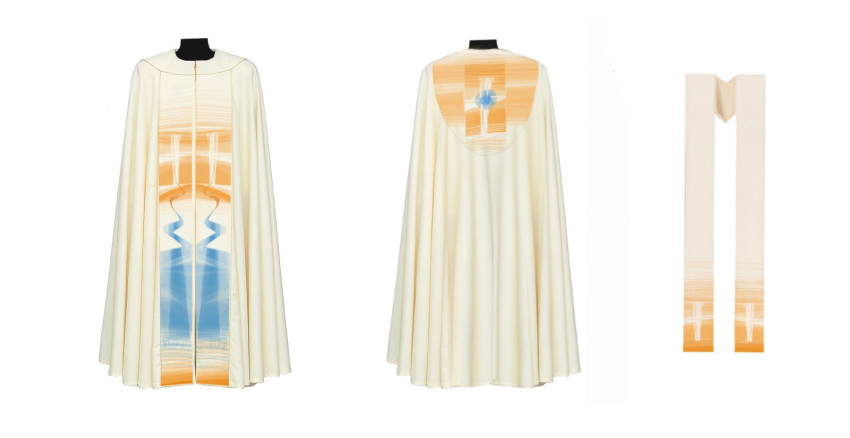 A liturgikus ruhákat a Szociális Testvérek Társaságához tartozó Fecske Orsolya szerzetesnő, festőművész tervezte, a Magyar Katolikus Püspöki Konferencia felkérésére.