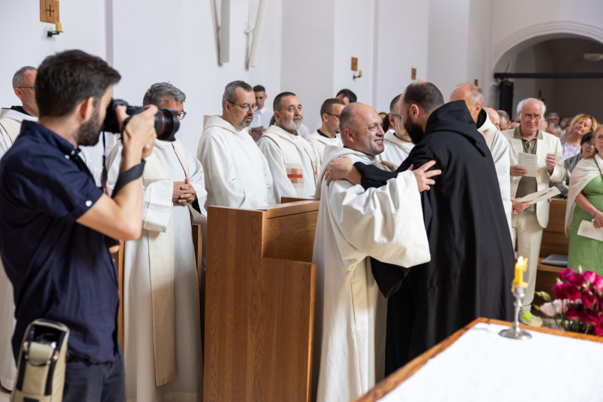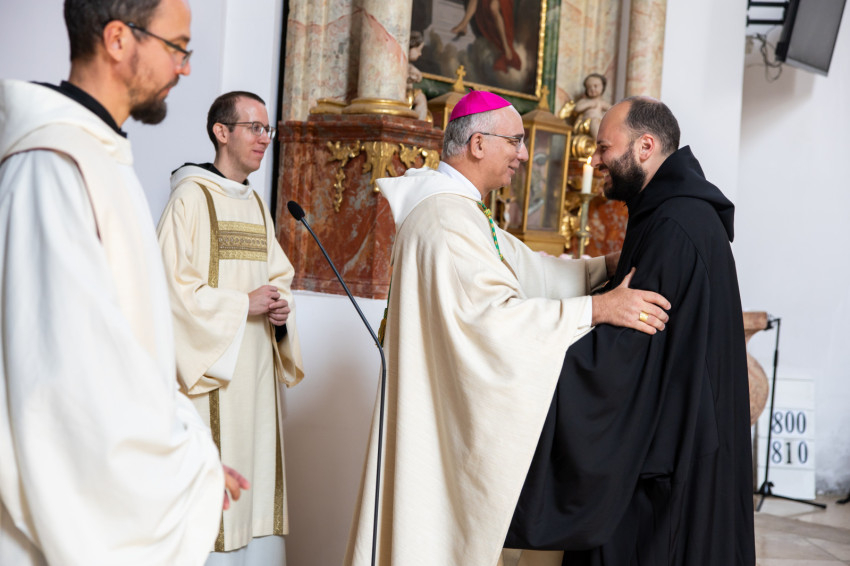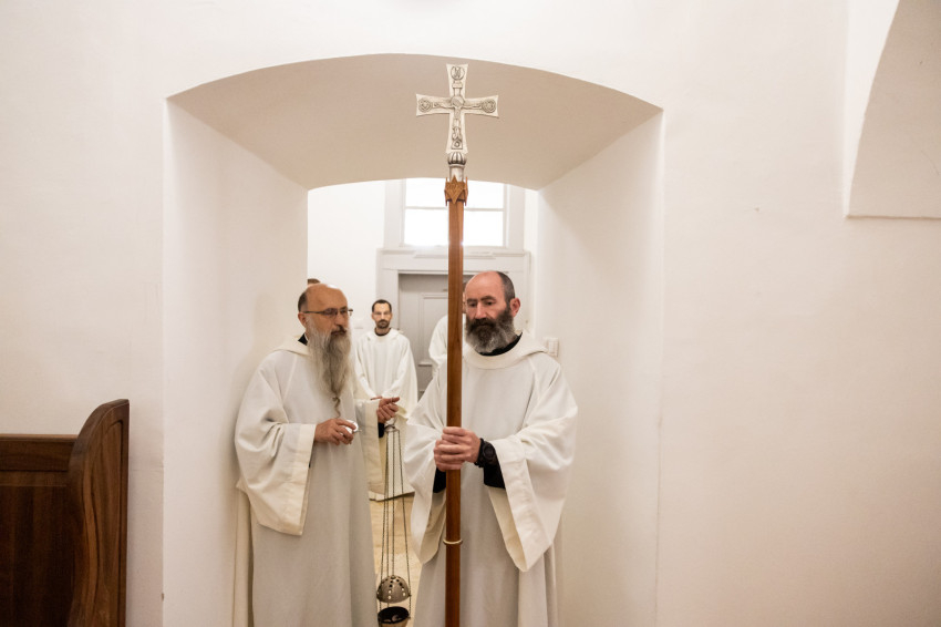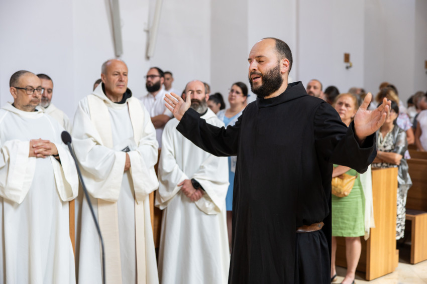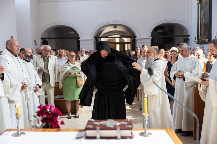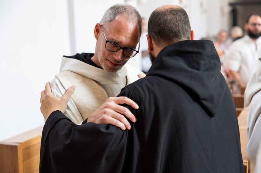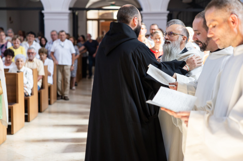 Ezt a „szerzetesszentelés” követte, egy énekelt imádság, amelyben az elöljáró Isten áldását kéri a szerzetesre. A kukulla (a monasztikus szerzetesek a zsolozsmázáskor viselik – a szerk.) megáldása és felvétele után a fogadalomtétel az örökfogadalmas testvérekkel váltott békecsókkal zárult.