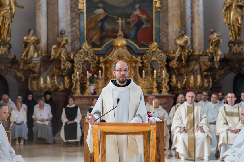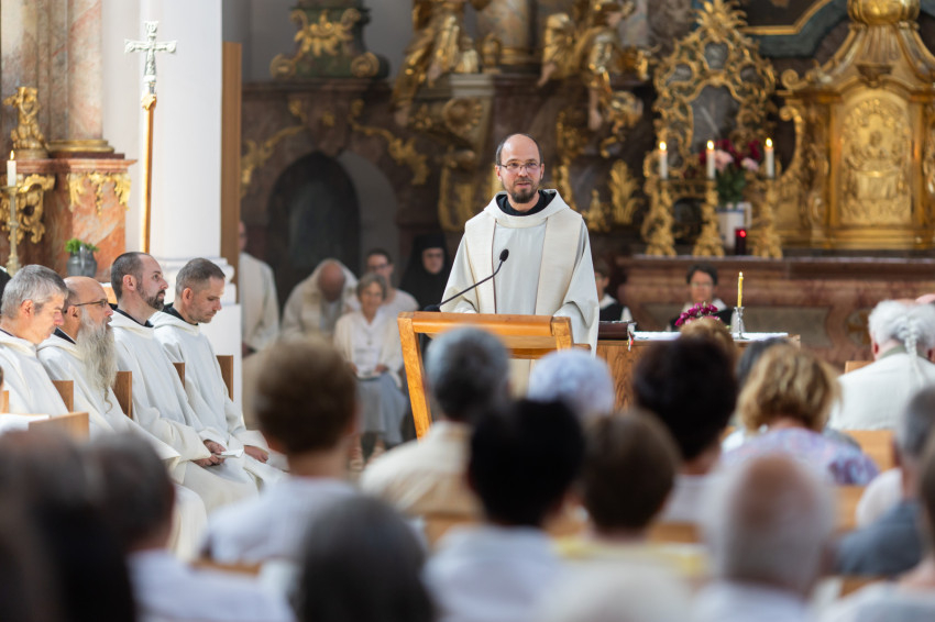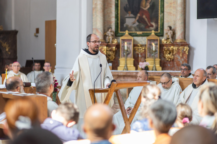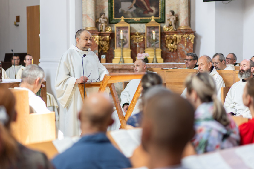 Baán Izsák homíliájában „Isten élő Igéje” alapján arra kereste a választ, ki a szerzetes. Elsőként az olvasmány, „Szent Jákob atyánk” története felé fordult, azt kérte, a szerzetes kilétét firtató kérdésre keresve a választ helyezkedjünk először annak a szolgának a szemszögébe, akitől Ézsau azt kérdezi: „Kié vagy, hová tartasz, és kié a nyáj, ami előtted megy?” A perjel rámutatott, ezek a kérdések életállapottól és életkortól függetlenül mindannyiunkhoz szólnak, és különösen is aktuálisak a sorsfordulók idején, nagy döntésekkor.