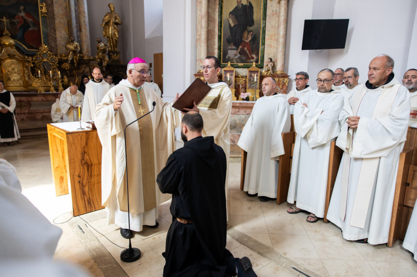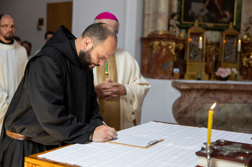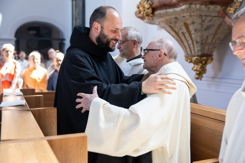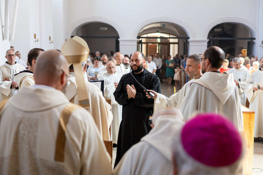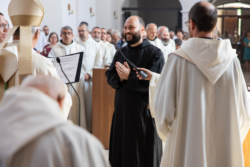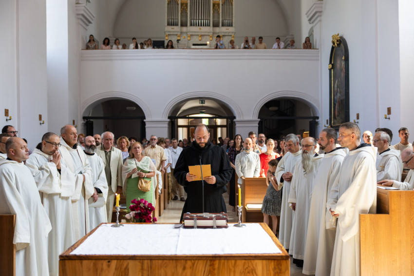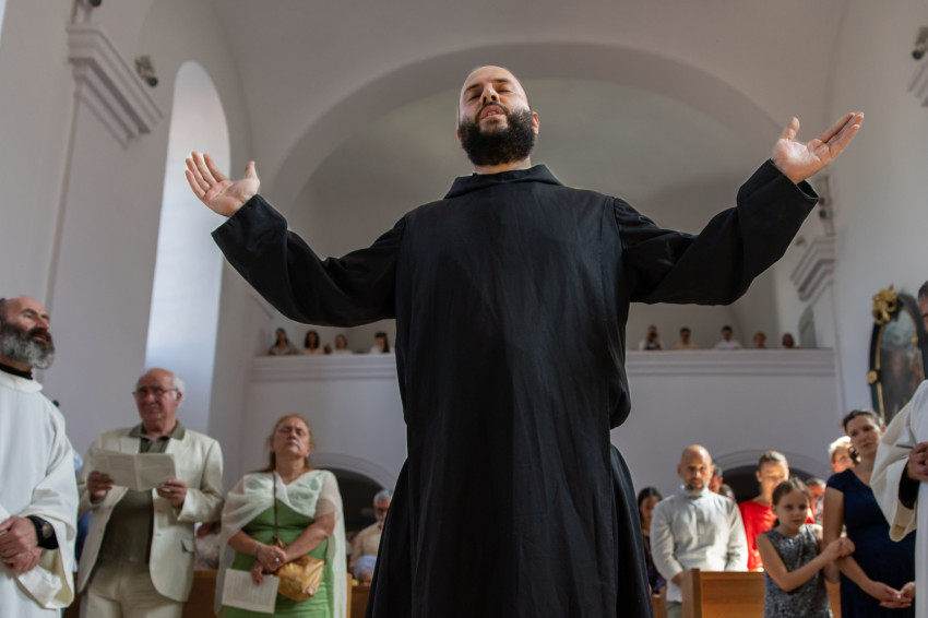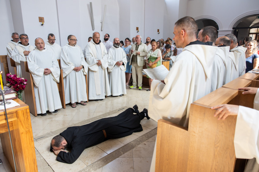 A Szent Günter által 1018-ban alapított, és 1998-ban újraindított monostorban 9 szerzetes él. A mai naptól fogva heten örökfogadalmasok és ketten növendékek. Testa Jákob testvér 1989-ben született. 2019 nyarán lépett be a bakonybéli bencés közösségbe, melyet Baán Izsák atya révén ismert meg. A perjel így mutatta be Jákob testvér elkötelződésének lépéseit: „2003-tól 4 éven át Rómában tanultam a Szent Anzelm Pápai Egyetemen. A szerzetesi gregorián scholához csatlakozott a Testa család is. Jákob testvér ekkor 14-15 éves lehetett. A család szerette a gregoriánt, minden vasárnap ott voltak a római viszonylatban igen korán kezdődő szentmisén, és a schola azt megelőző próbáján. A család a Comunione e Liberazione közösséghez tartozott. Meghívtam őket Bakonybélbe, nézzék meg, milyen a monostorunk. Komolyan vették, eljött a család és a fiatalokból álló közösségük. Tíz napot töltöttek nálunk, ősszel pedig az egész társaság elkezdett magyarul tanulni. Jákob is, aki annyira jól érezte magát nálunk, hogy többször visszajött önkénteskedni a középiskolás évei alatt. Én is jártam vissza Rómába, mindig röviden találkoztunk, lazább barátság alakult ki közöttünk. A 2010-es évek végén, amikor utoljára mentem tanítani Rómába, Jákob már végzett kémia alapszakon az egyetemen, és megkeresett. Azt mondta, azt a teljességet, amit 14 évesen megélt Bakonybélben, nem találja sehol máshol. Szeretne eljönni, ránézni, ez nosztalgia, ábránd, vagy ebben van valami több. Jött, és a harmadik alkalommal már csak idefelé vett jegyet.