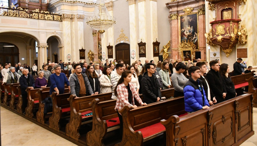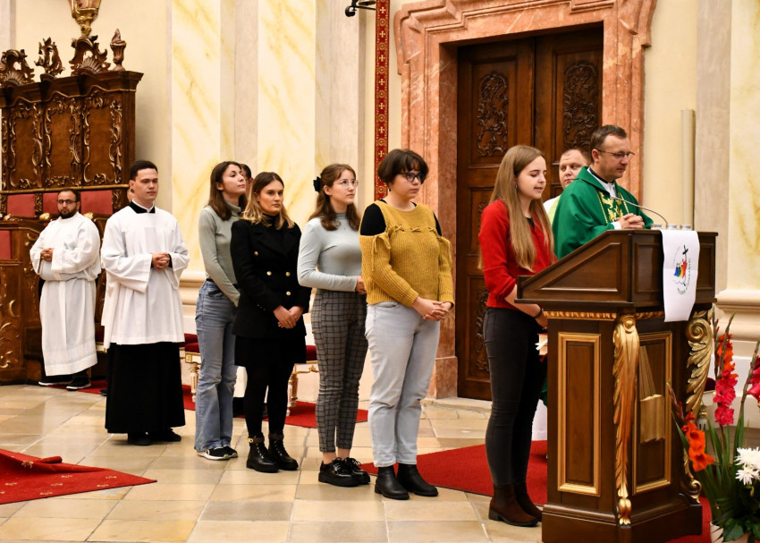 „Ezen a szentmisén főleg az új egyetemi tanévért imádkozunk. Kedves fiatalok, Istennek terve van az életünkkel. Egyikünk sem él hiába. Fel kell fedeznetek a hivatásotokat, az utatokat. A szentmise kezdetén készüljünk fel arra, hogy valóban találkozzunk a Jóistennel” – mondta bevezetőjében Szilvágyi Zsolt püspöki helynök.