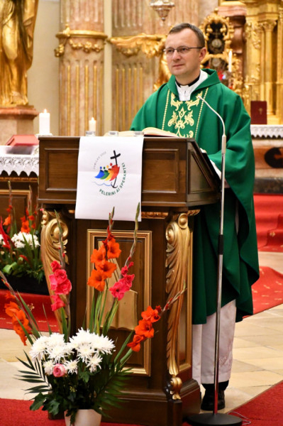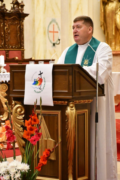 Román és magyar nyelven elmondott homíliájában Dumitru Daniel egyházmegyei ifjúsági lelkész így fogalmazott: „Ma a szentmisén Isten áldását kérjük az új tanévre, és szeretnénk elmélkedni arról az útról, amelyet most kezdtek el vagy folytattok. A tanév nemcsak a tanulásról szól, hanem személyes és közös zarándoklatnak tekinthető egy reményteljes jövő felé. Arra hívlak benneteket, hogy ezt az utat vizsgáljátok meg a Ferenc pápa által a 2025-ös szentévre választott téma – A remény zarándokai – szemszögéből.”