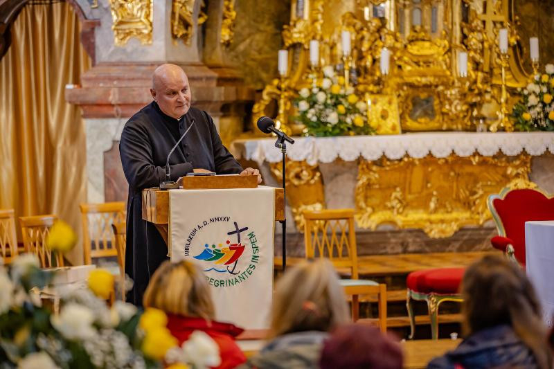 Miklós atya beszélt azokról az élményekről, melyeket az elmúlt években a közösség átélt, és amelyek azt mutatják, hogy Szent Erzsébet közbenjárása ma is ható erő: évek óta minden kedden Szent Erzsébet litániáját imádkozzák az ereklyéje előtt, és minden hónap első keddjén imaórát és szentmisét tartanak. A hívek és zarándokok egy kis ládikába helyezik imaszándékaikat és adományaikat, amelyekből szentmiséket ajánlanak fel. Ezek az imaszándékok sokszor megható történeteket rejtenek. Egy fiatal pár például évekkel korábban gyermekáldásért imádkozott itt, s amikor megszületett gyermekük, visszatértek, hogy hálát adjanak. Egy idős asszony a covid idején súlyos beteg lánya gyógyulásáért könyörgött, és azóta rendszeresen visszajár, hogy kérje és megköszönje Szent Erzsébet közbenjárását. De vannak olyan esetek is, amikor valaki ugyan nem gyógyult meg testileg, mégis a hozzátartozók imája és Erzsébet közbenjárása segítette őt, hogy lélekben felkészülten induljon az Atya házába.