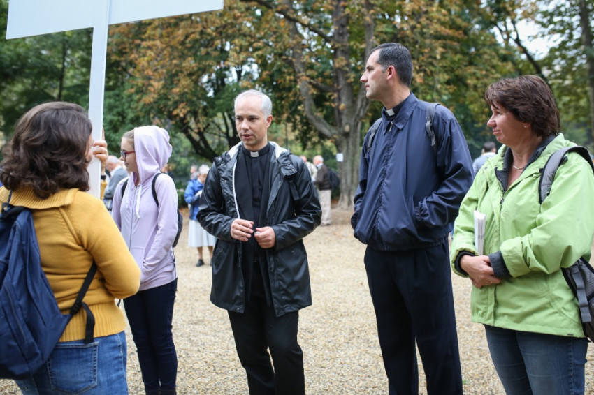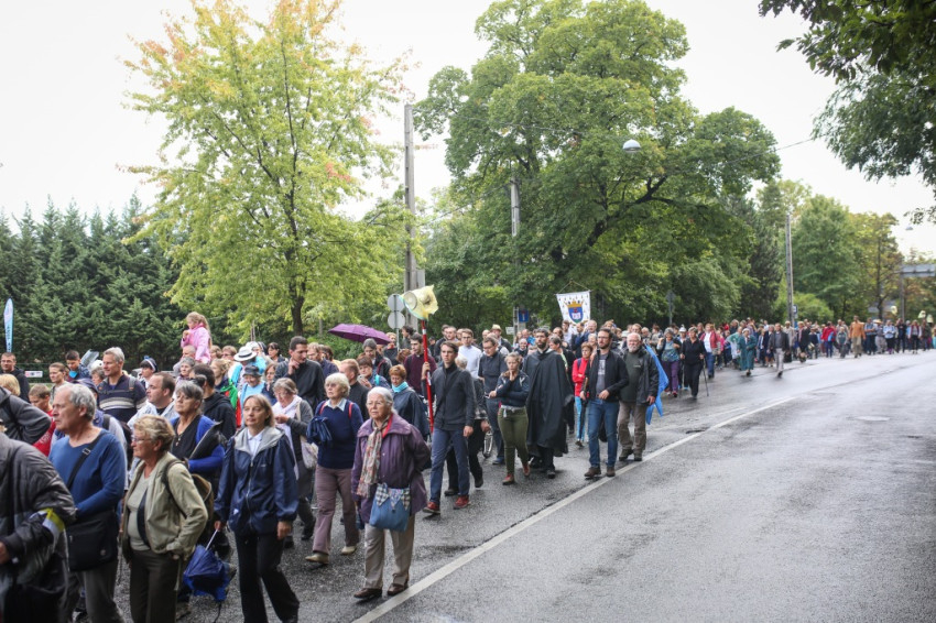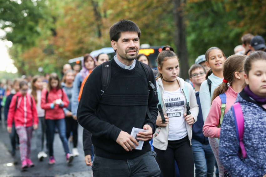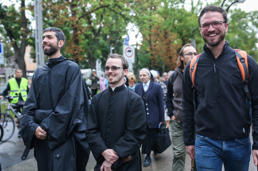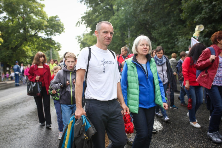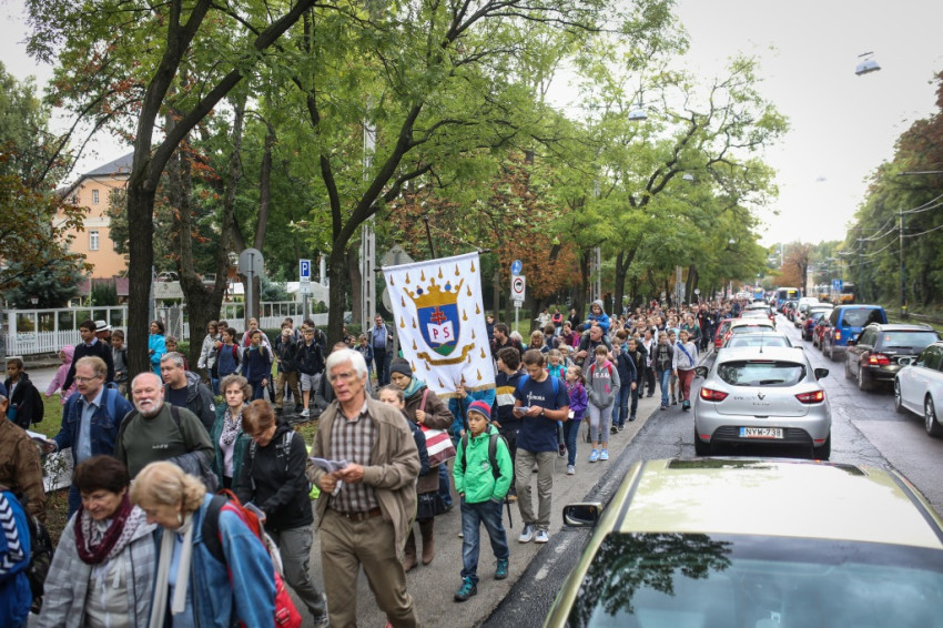 Reggel 7 órától várták a zarándokokat a városmajori Jézus Szíve-templom előtt. Kisebb-nagyobb csoportok érkeztek: szülők gyerekekkel, idős emberek, osztályok tanáraikkal, iskolájuk zászlóival, valamint plébániák, közösségek a fővárosból, az ország különböző részeiből, de külhonból is. Közöttük járt-kelt Lambert Zoltán atya, a vendégfogadó plébános, aki előrehaladott kora és közelmúltbeli betegsége ellenére vállalkozott az útra, végig gyalog tette meg a máriaremetei kegytemplomhoz vezető mintegy 14 kilométeres távot.