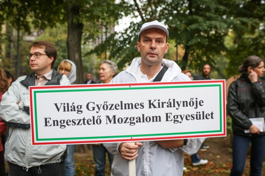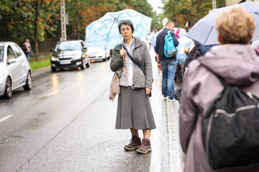 A gyaloglók teljes szélességben elfoglalták az egyik sávot – imádkozók haladtak a járművek útján –, a forgalom így kicsit megakadt ezen a szombaton a főváros ezen részén.