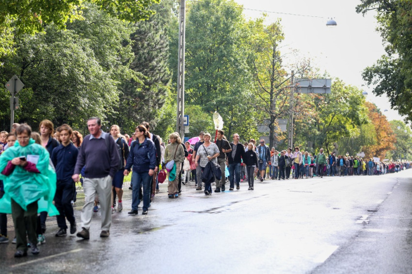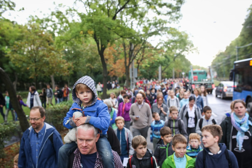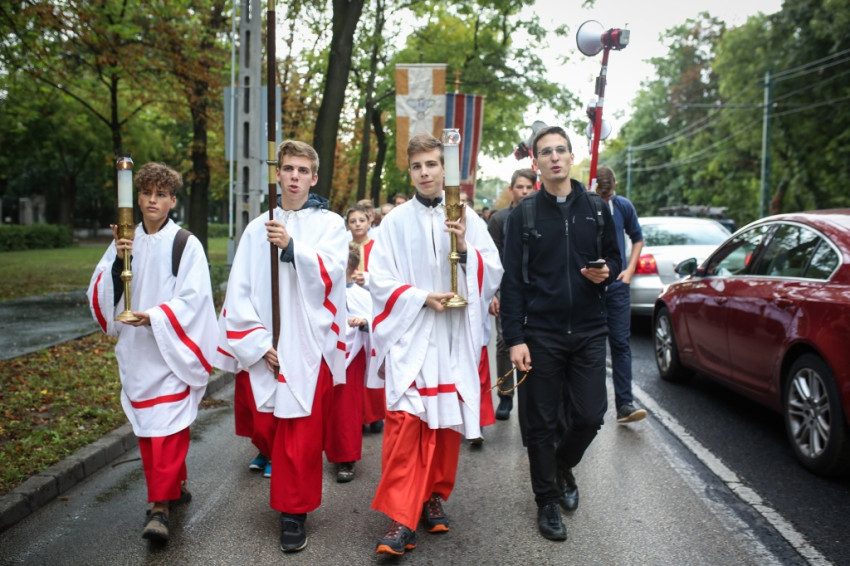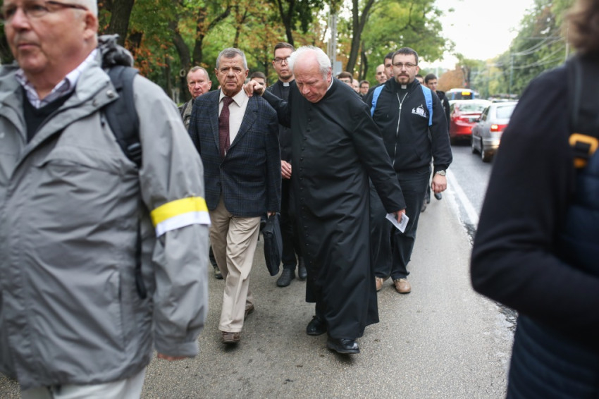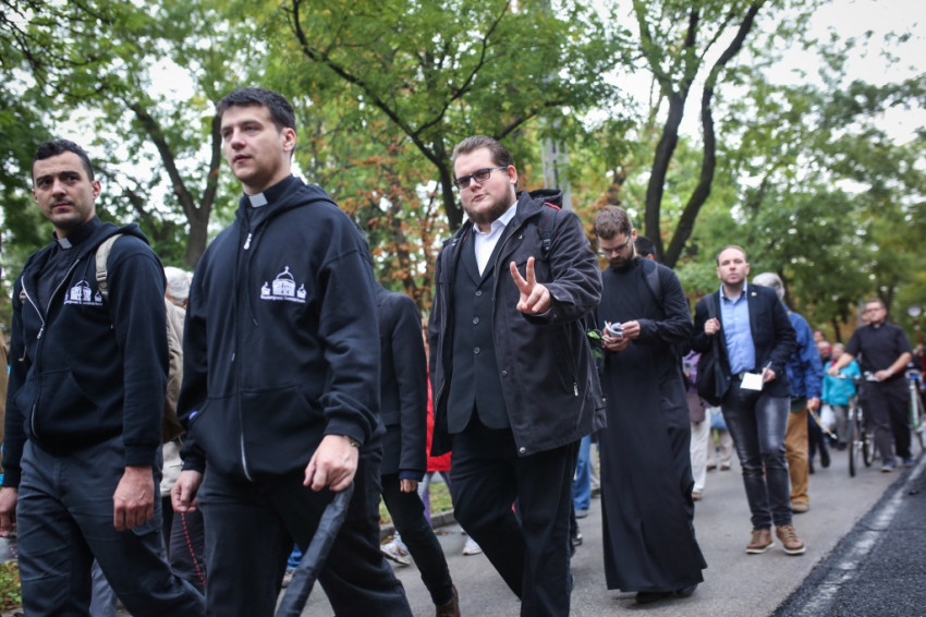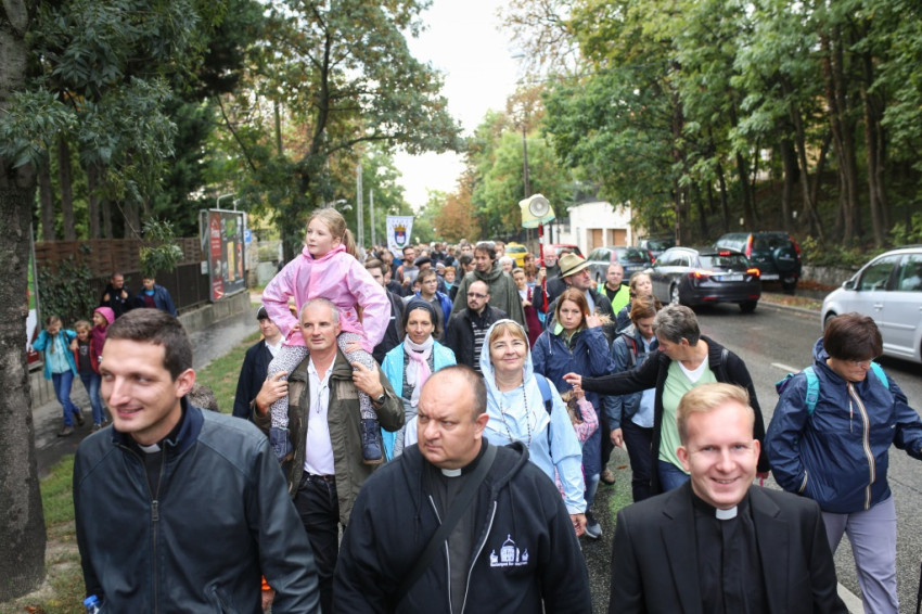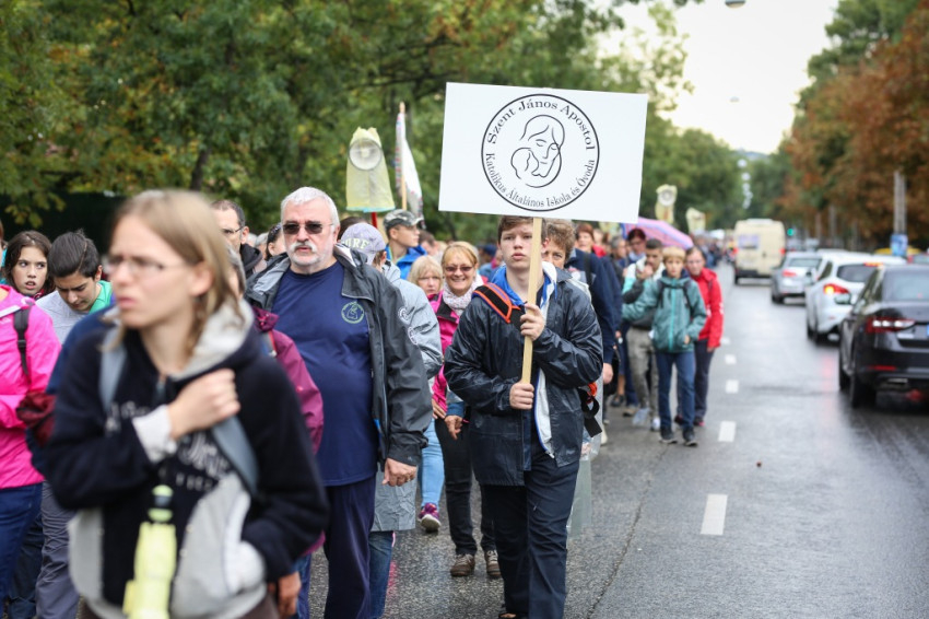 A menet őszies időben és hangulatban indult, énekkel, imával, Székely János püspök áldásával. Elöl haladtak a ministránsok, valamint az esztergomi és a központi szeminárium növendékei. Mögöttük kígyózott sok kilométer hosszan a zarándokok serege. Ismerősök üdvözölték örömmel egymást, hol beszélgetve, hol csendben, hol imádkozva haladtak az emberek először a Szilágyi Erzsébet fasoron, majd a Hűvösvölgyi útra kanyarodtak rá. Közben bepróbálkozott az eső, de végül kitisztult az ég, és az Ördögárok úton már sütött a nap.