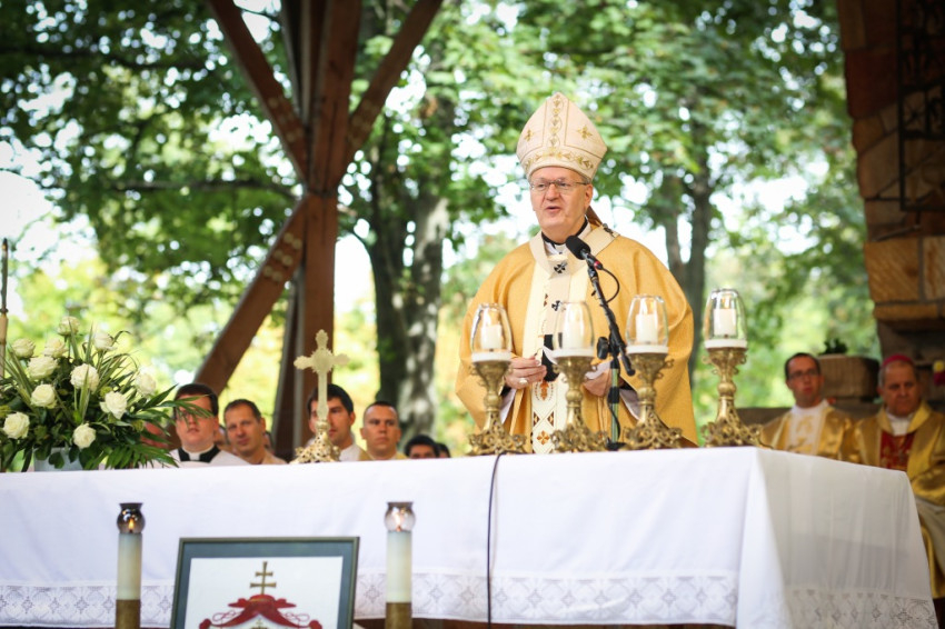 Hetven esztendővel ezelőtt, 1947. szeptember 14-én éppen a Szent Kereszt felmagasztalásának ünnepén vezetett Mindszenty bíboros úr felejthetetlen zarándoklatot ide, Máriaremetére. Magának az ünnepnek a története fordulatokban gazdag és a kereszt tiszteletével, a kereszt ereklyéinek elterjedésével meg a jeruzsálemi zarándoklatokkal szorosan összefügg. Eleinte a Szent Kereszttel kapcsolatos ünnepek közül szeptember 14-e a Szent Kereszt feltalálásának ünnepe volt, később a Szent Kereszt felmagasztalása került ennek az ünnepnek a középpontjába (Exaltatio crucis). Jelenleg a Martyrologium Romanum ezt a napot Festum Exaltationis Sanctae Crucisnak nevezi, vagyis a Szent Kereszt felmagasztalása ünnepének, amely arra emlékeztet, hogy a Krisztus sírja fölé emelt jeruzsálemi Feltámadás-bazilika (hétköznapi nevén: a Szent Sír-bazilika) felszentelése után felemelték és tiszteletben részesítették a keresztet mint a húsvéti győzelem jelvényét és mint azt a jelet, amely majd feltűnik az égen és meghirdeti az egész világnak Krisztus második eljövetelét.