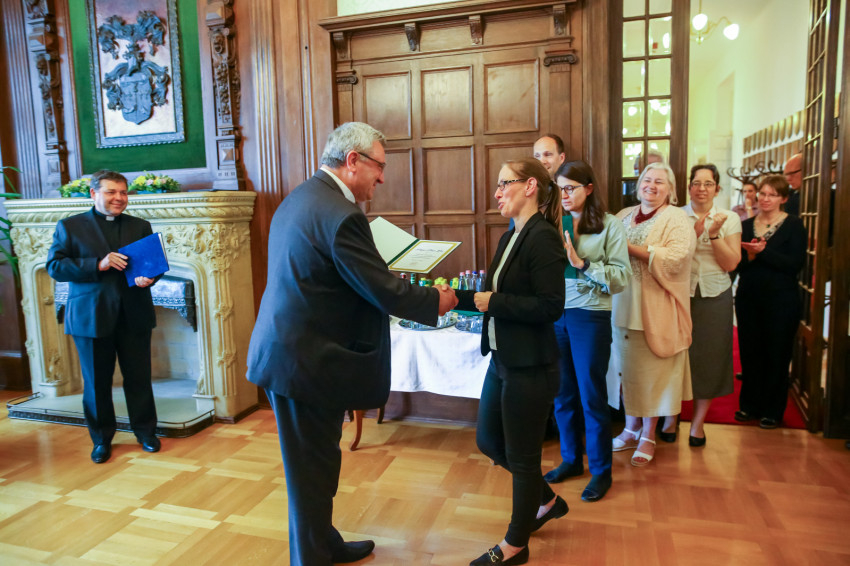 Köszönő oklevelet vehetett át Tóth Tamás, az MKPK titkára, a pápalátogatás általános koordinátora; Németh Gábor, az MKPK Titkárságának irodaigazgatója; Horváth Zoltán terézvárosi plébános, a pápai szentmise liturgikus felelőse; segítője, Farkas Ferenc káplán; Hatházi Róbert, a kecskeméti Szentcsalád Plébánia vezető lelkipásztora, a pápai szentmise sekrestyei szolgálatának irányítója; Sebő Balázs, az MKPK sajtóosztályának vezetője; Sümeghy Kata, az MKPK sajtóosztályának munkatársa; Z. Zolnay Eszter, az MKPK protokollirodájának vezetője és Fritzné Tőkés Éva az általános koordinátor asszisztense.