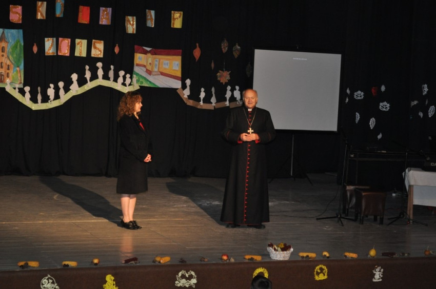 Az ünnepi műsort a helyi kultúrotthonban mutatták be. Az előadás végén az iskola igazgatója, Csömöre Hermina megköszönte kollégái és diákjai munkáját, majd a színpadra szólította a Nagybecskereki Egyházmegye főpásztorát, Német László SVD püspököt, hogy megköszönje az iskola épületének felújításához nyújtott egyházmegyei segítségét.