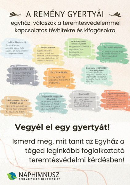 Közel tucatnyi hasonló kísértést, kifogást és a rájuk adott katolikus választ gyűjtöttek össze, így jött létre a remény gyertyái plakát és a hozzá tartozó kis füzetke. Azért a „remény gyertyáinak” nevezték el őket, mert ezek a tanítások valóban erőt adnak és irányt mutatnak a csüggedés perceiben, amikor nem látjuk a globális problémák megoldását és benne a saját szerepünket.