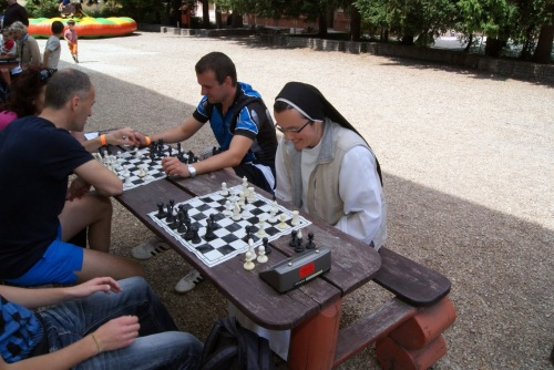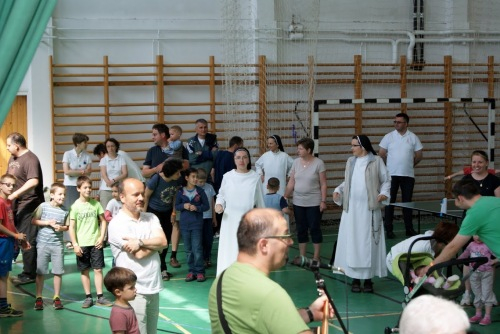 Ebéd után az édesanyák és a szerzetesnők csaptak össze egy kosárlabda-mérkőzésben. Ezt a sokak által nagyon várt atyák-apák focimeccs követte, melyen Veres András megyéspüspök végezte el a kezdőrúgást.