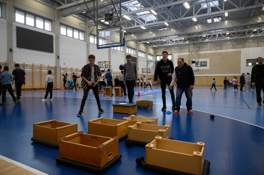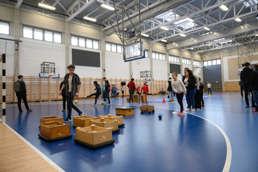 Játékos vetélkedővel folytatódott a program: többek között falmászás, kapura rúgás, kosárra dobás, kislabdadobás, miniteke és kötélhúzás várt a csapatokra.