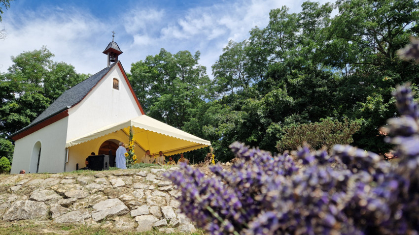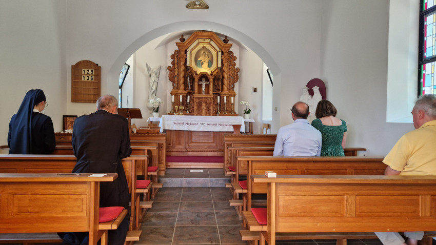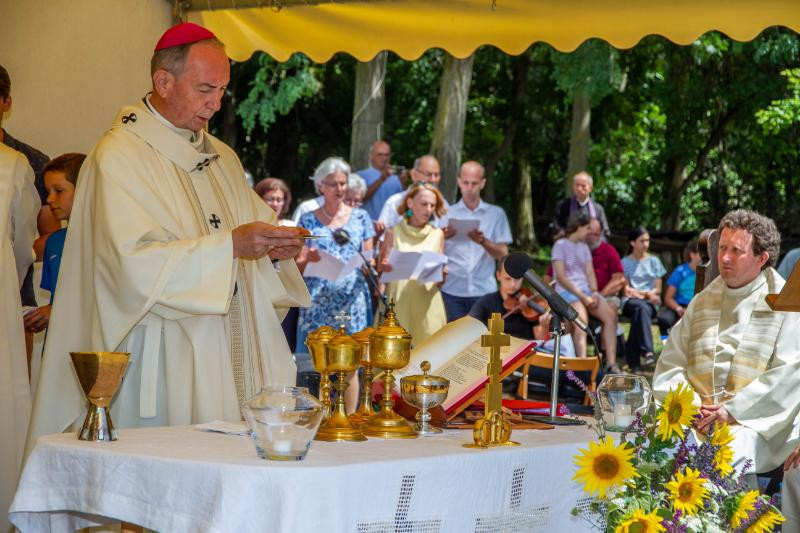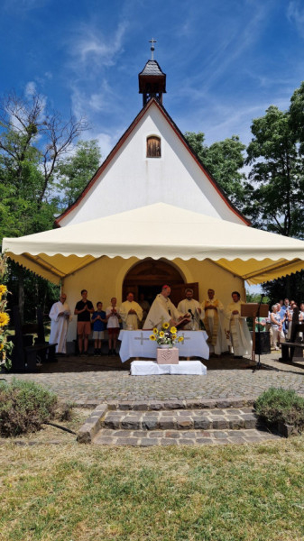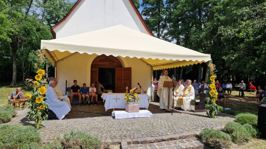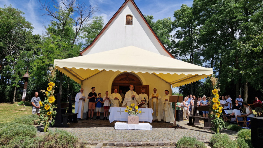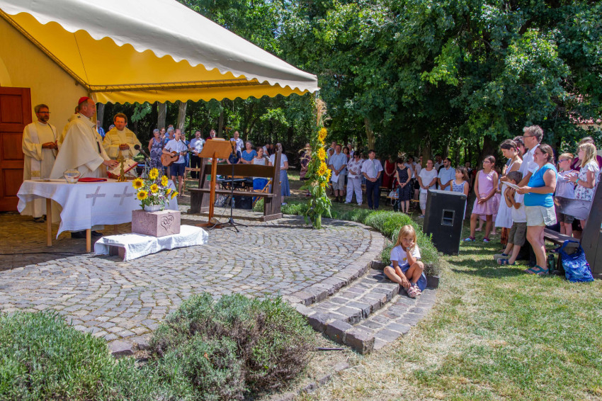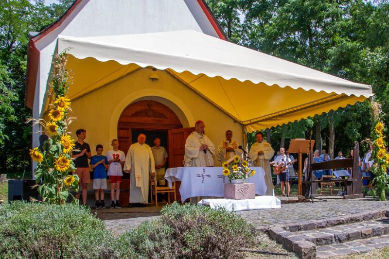 Az ünnep szentmisével folytatódott, amelynek főcelebránsa Udvardy György érsek volt, aki a kápolna küldetéséről és a közösség által megtalált nevéről beszélt: „Egymásba írt szívek szentélye”. A schönstatti lelkiség a szövetségen alapul: szövetség Istennel, szövetség egymással a házasságban és szövetségünk a közösségben, az Egyházban. Ez a kápolna helyszíne volt eddig is és ezután is e szövetségi kapcsolatok megújulásának, frissülésének és virágzásának.