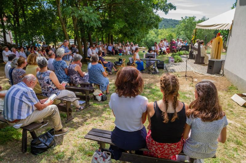 Az ünnepi alkalom, melyen közel háromszázan vettek részt, a most elkészült Mária-kertben kezdődött. Gertrud-Mária Erhard nővér, a magyar közösség egyik vezetője mondott köszöntőt, majd Arkadius Sosna lengyel származású schönstatti atya, az általános nemzetközi vezetőség tagja megáldotta a kertet.