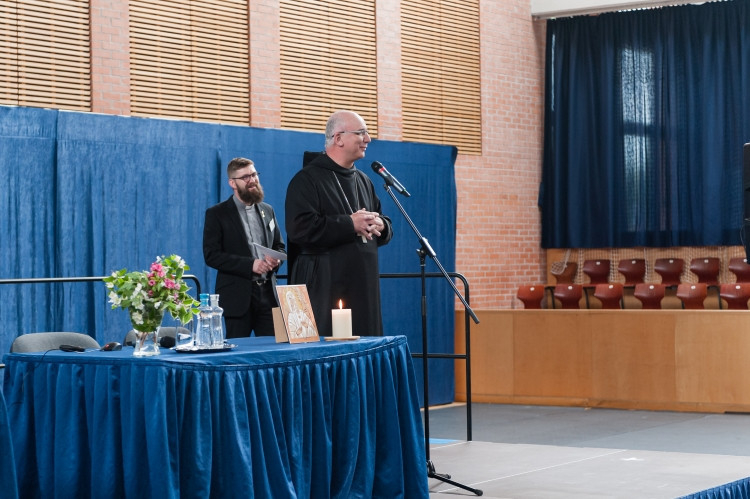Egy mindenkit megnevettető Churchill-anekdotával kezdte köszöntőjét a pannonhalmi főapát. A történet szerint Anglia egykori miniszterelnöke a feleségével sétálgatott egy londoni parkban, amikor egy utcaseprő odalépve hozzájuk kedélyesen elbeszélgetett az asszonnyal. Mikor végül továbbmentek, Churchill kérdésére, hogy honnan ismeri az utcaseprőt, felesége elmondta, hogy tiniként szerelmes volt belé a férfi. Erre férje megjegyezte, hogy ha hozzáment volna, akkor most utcaseprő-feleség lenne. Mire az asszony azonnal rávágta: „Tévedsz, drágám, ha én akkor hozzámegyek, most ő lenne a miniszterelnök.”