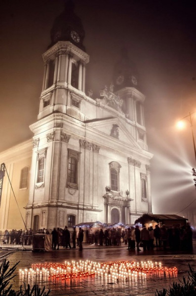 A fehér és piros mécsesekből kirakott szimbólumot Horváth Tamás, Csót község plébánosa áldotta meg. A fehér mécsesek egy keresztté álltak össze, amiből kilobbantak a pirosak által alkotott szeretetlángok. Rövid beszédet mondott Salgó Ferenc esperes-kanonok plébános, jelen volt Szijártó László kerületi esperes-plébános is. A szolidaritási akcióban az Erkel Ferenc Ének-Zenei Általános Iskola nagykórusa a Dona nobis pacemet énekelte.