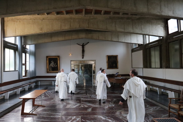 A magyar tartományi vikariátus domonkos szerzetesei a zarándoklat során megcsodálták a Joachim és Pierre Génard testvérek által épített új kolostort, amely a második világháború utáni szakrális művészet remeke.